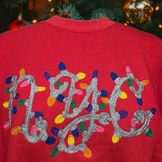 Customized sweatshirts with chainstitch embroidered chenille patches. The perfect sweatshirt to represent your hometown, school or anything special to you!