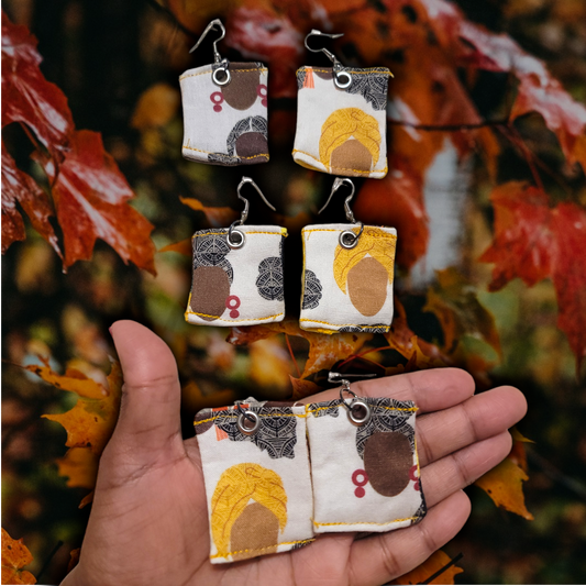 Africa and Headwrap Square Fabric Earrings