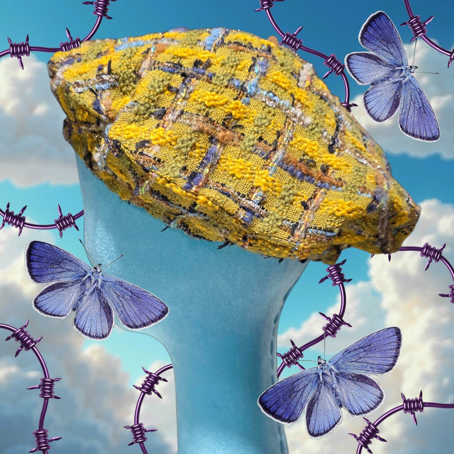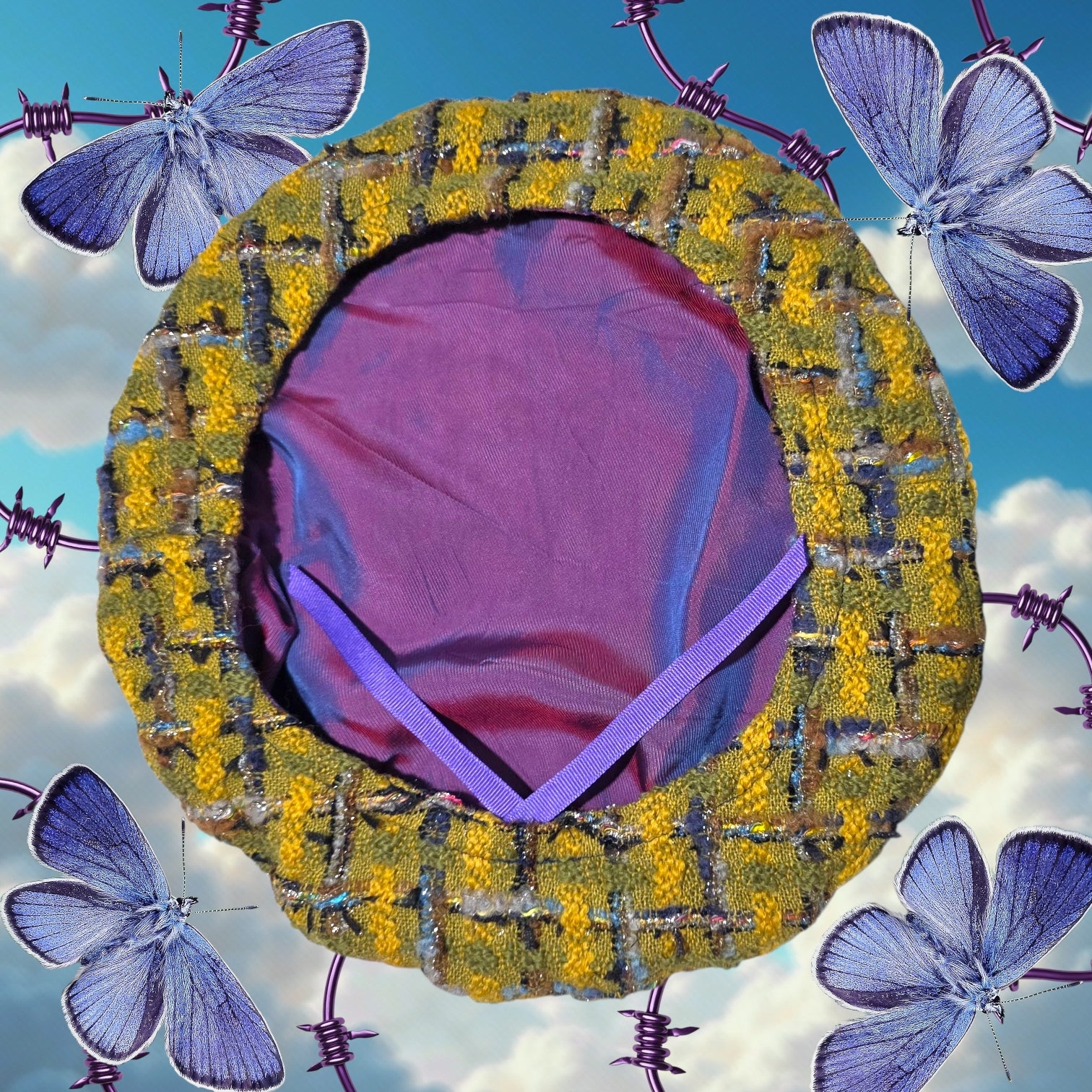 A perfect mix between classy and edgy. The tweed also has iridescent and silver thread giving it a nice sparkle as well. I also only have 3 of these at the moment, so once they sell out, I will try to make more. Has a polyester satin lining to protect the hair and this hat is fully adjustable with with a drawsting ribbon on the inside, so it can fit different head types.